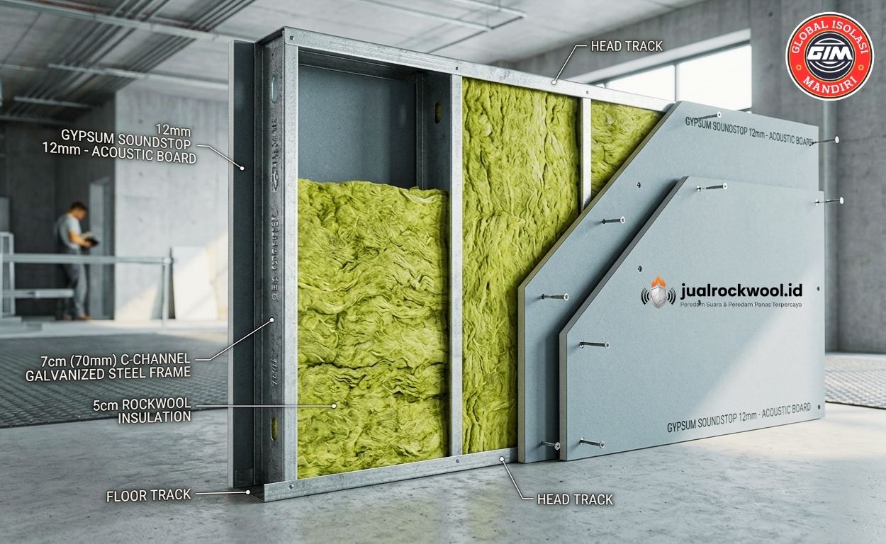 ✔ Pilih Rockwool + gypsum / partisi dinding