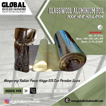Jual Glasswool Blanket Aluminium Foil D16 untuk insulasi atap terbaik. Peredam panas & suara efektif, hemat energi, ready stock dan siap kirim seluruh Indonesia.